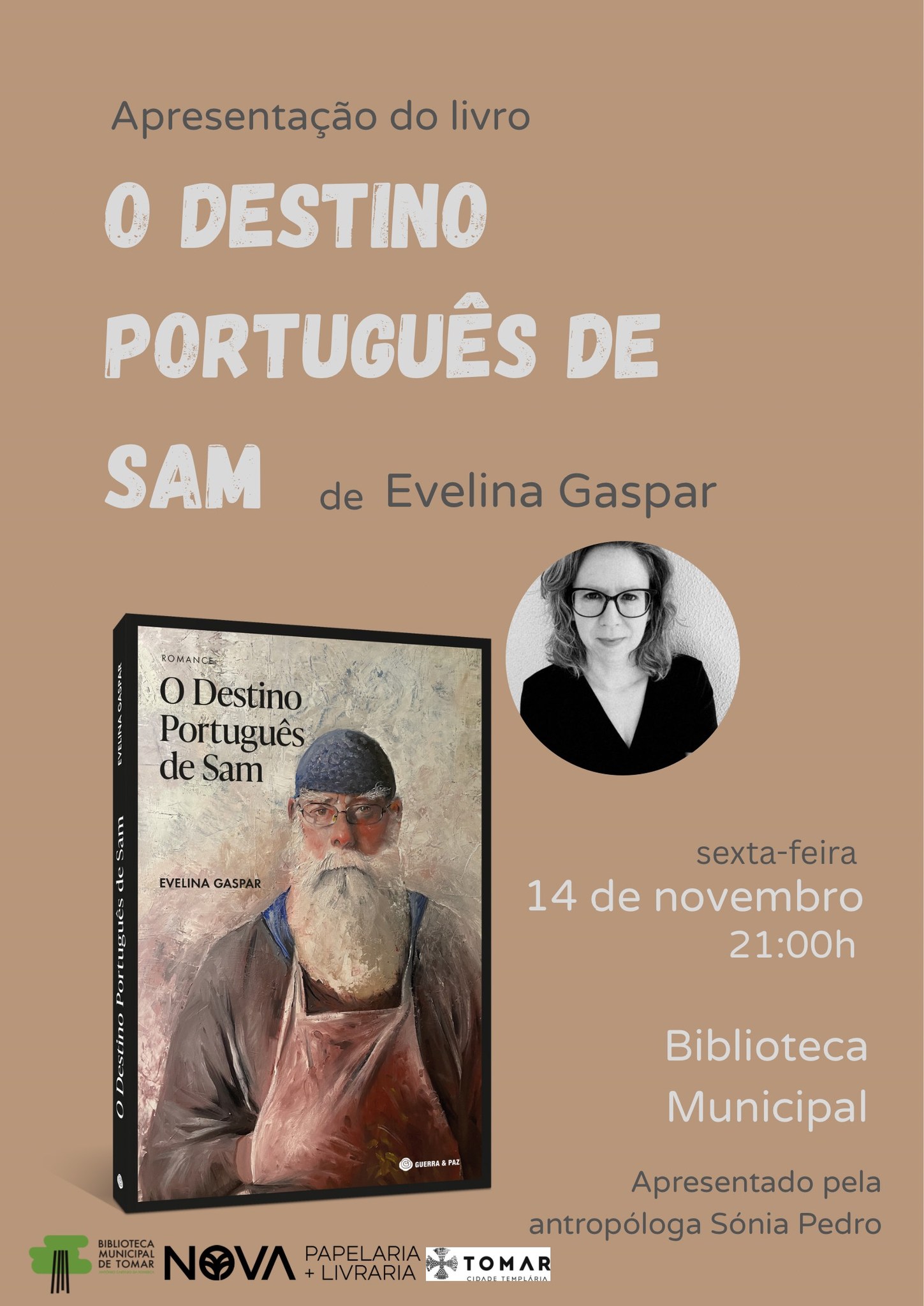 – 21h00 – Apresentação do livro “O destino português de Sam” da autoria de Evelina Gaspar na biblioteca municipal de Tomar.