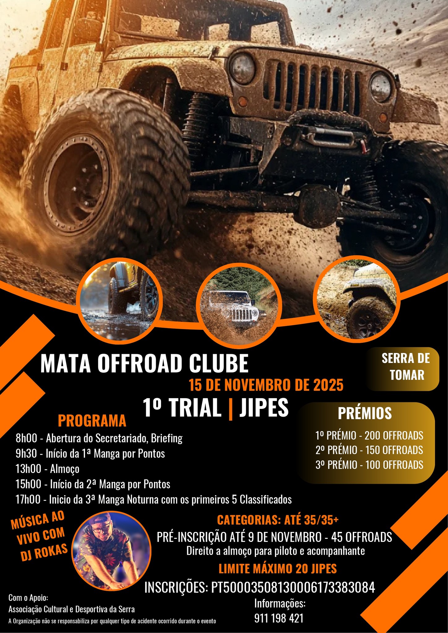 – 8h00 – 1.º Trial Mata Offroad em Hortas Fundeiras (Serra de Tomar). Org: Mata Off road Clube Serra – Tomar / Associação Cultural Desportiva e Recreativa da Serra.