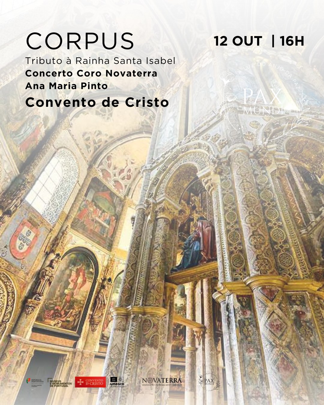 – 16h00 – Concerto Corpus em tributo à Rainha Santa Isabel no Convento de Cristo