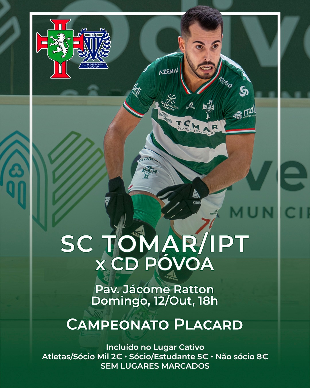 – 18h00 – Jogo de hóquei em patins Sp. Tomar – Clube Desportivo da Póvoa no pavilhão Jácome Ratton
