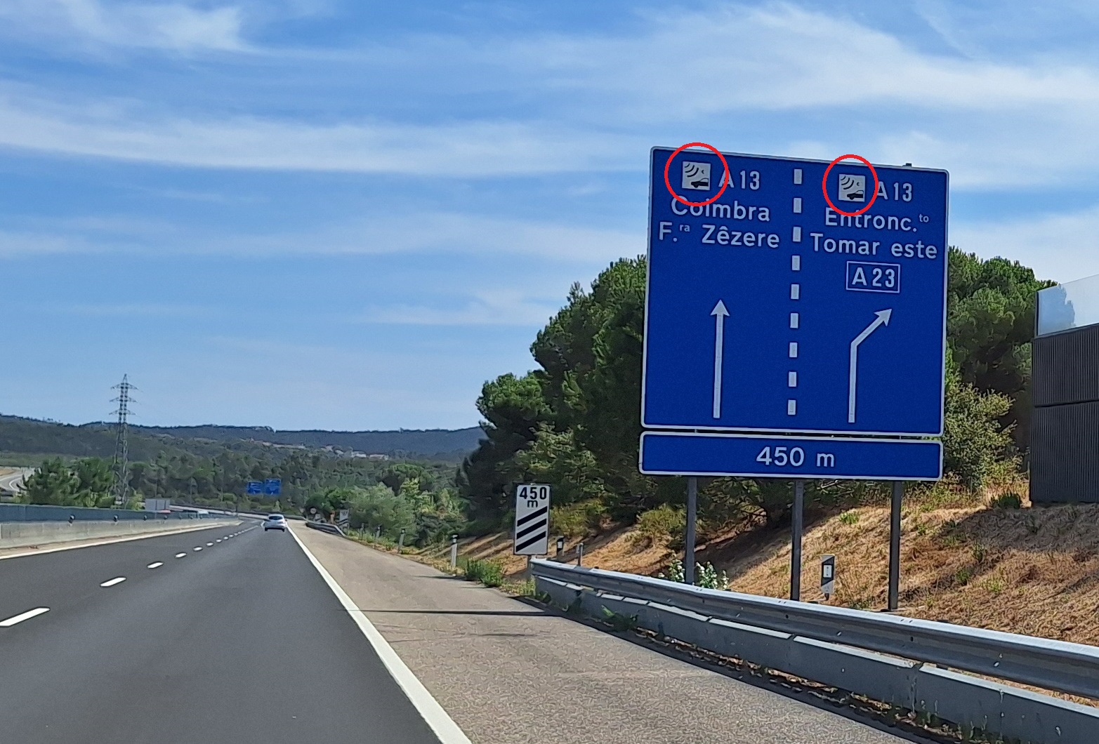Na estrada do Barreiro, ao entrar na avenida do hospital, dois sinais apontam para a direção da A13 com o símbolo de cobrança de portagens. Neste caso a responsabilidade é da câmara de Tomar.
