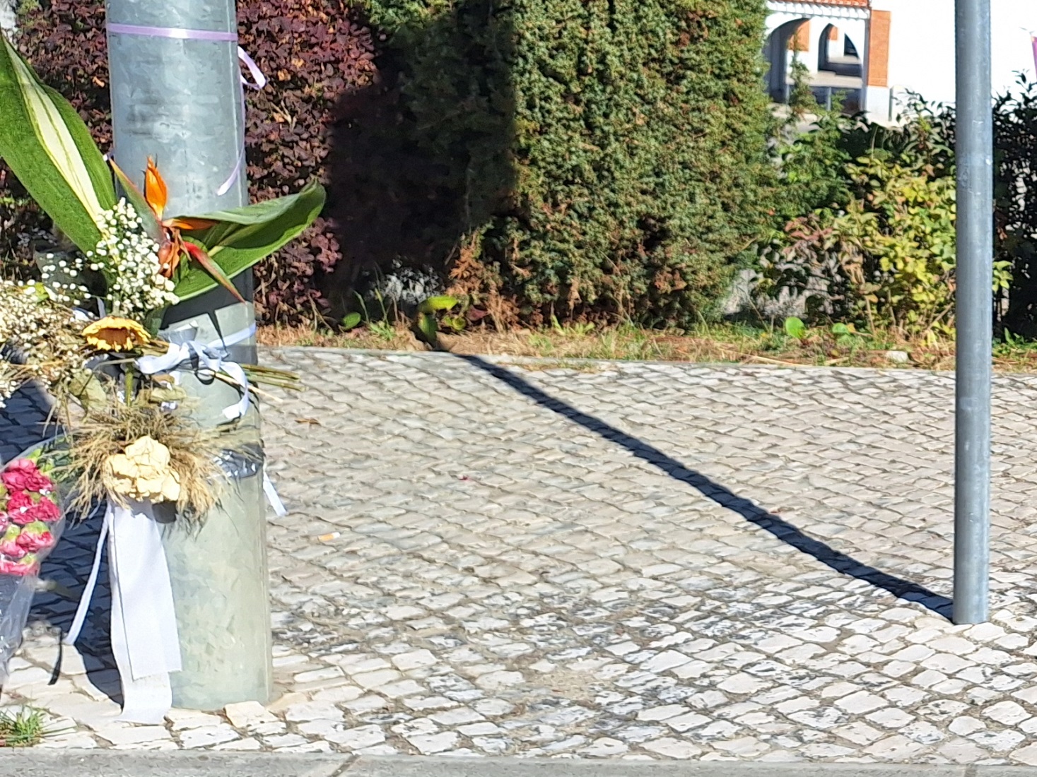 Colocadas flores no local onde mulher morreu atropelada