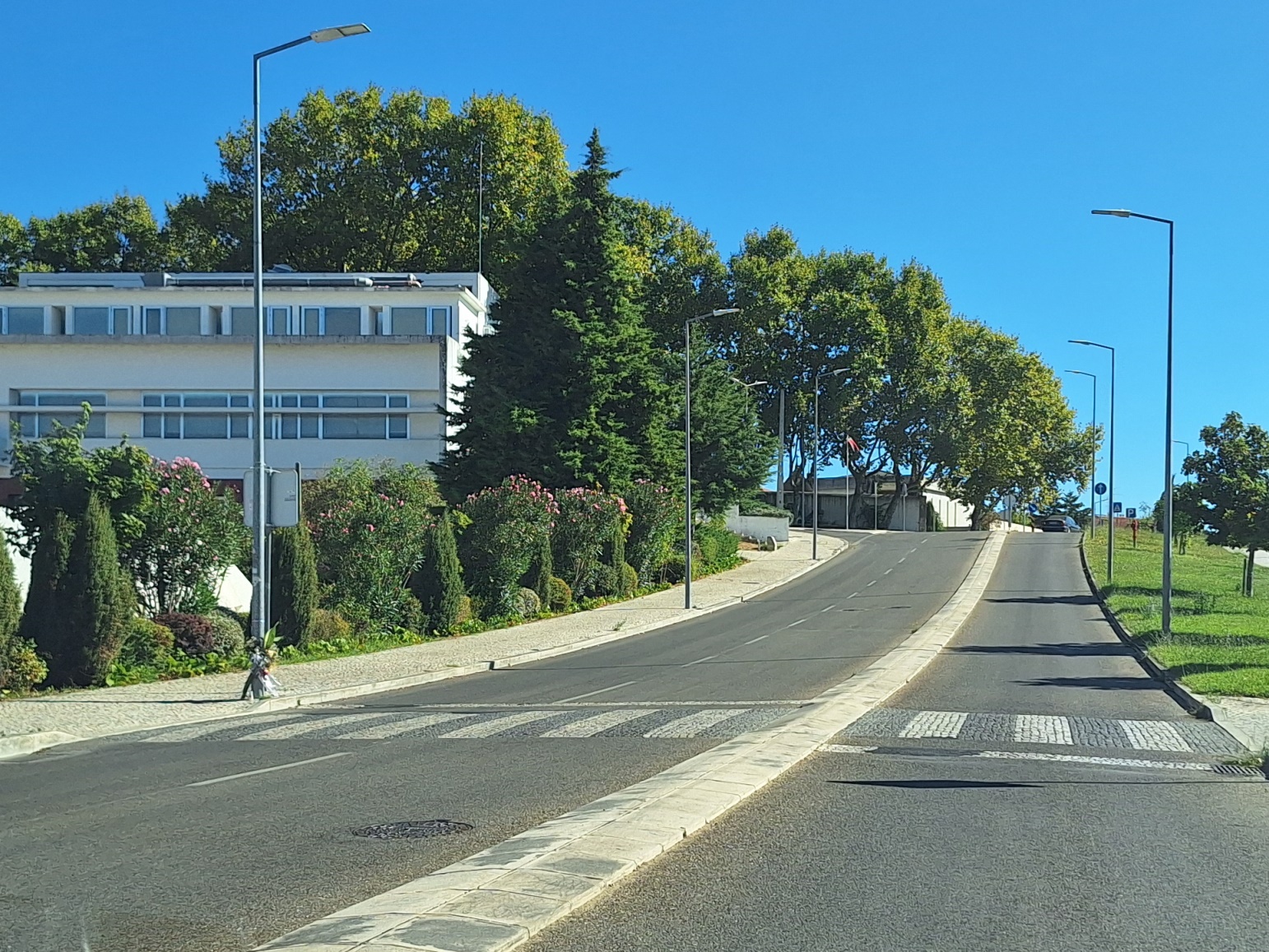 Junto à passadeira onde uma mulher de 74 anos morreu atropelada no dia 12 de setembro em Tomar, foram colocados vários ramos de flores.