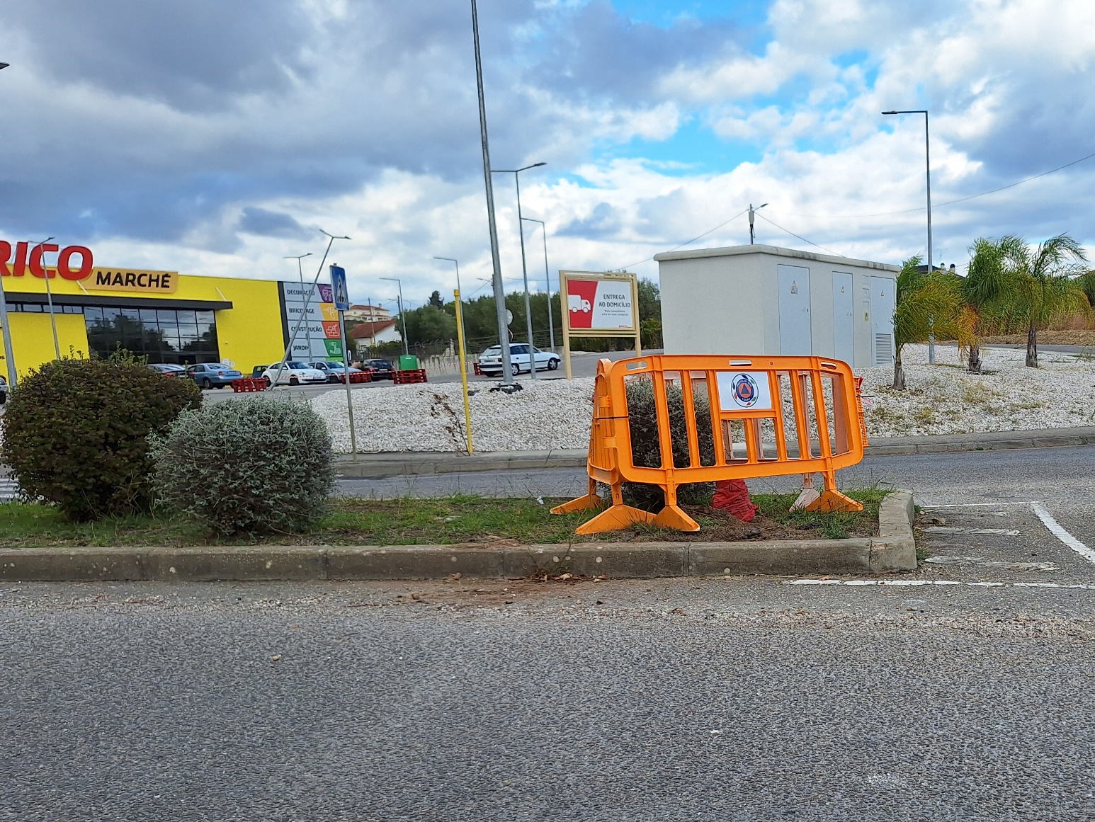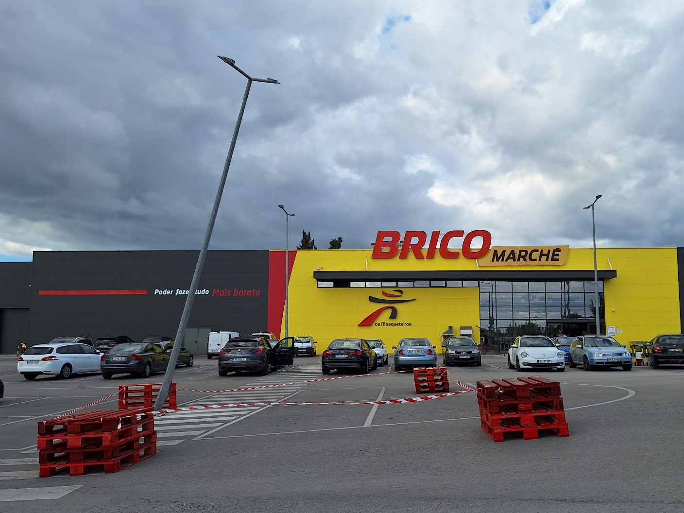 Este último poste de luz foi removido durante a manhã de domingo dado o perigo de queda iminente para a estrada. O do Bricomarché tem um perímetro de segurança à volta para minimizar o perigo.