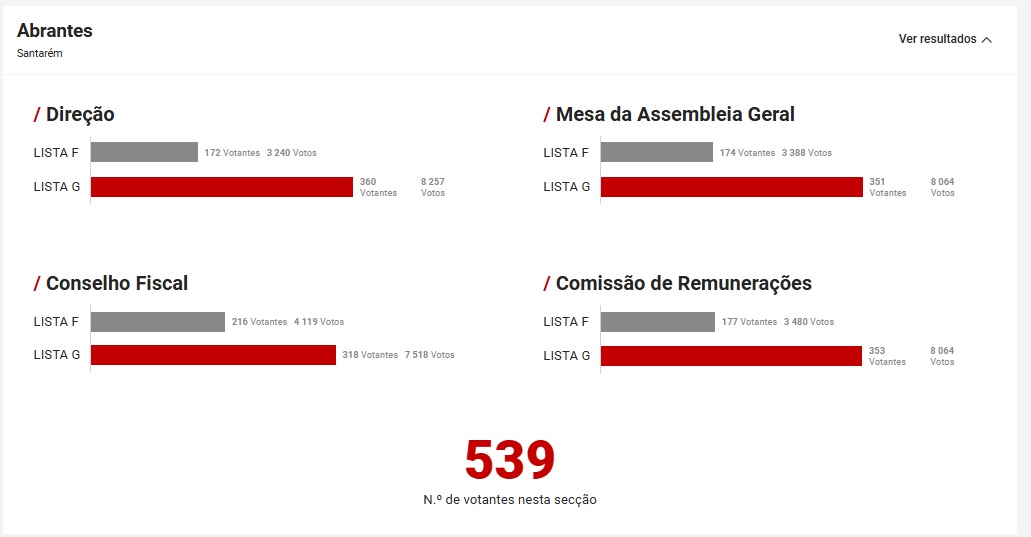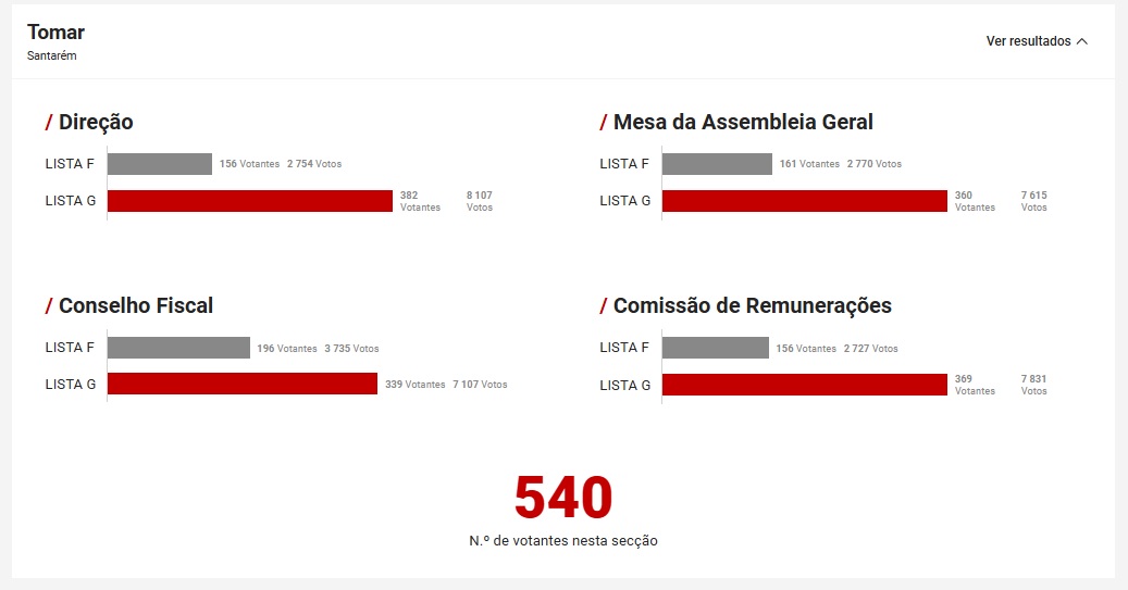 A lista de Rui Costa venceu também todos os órgãos, juntando naturalmente à eleição da direção o Conselho Fiscal, Comissão de Remunerações e Mesa da Assembleia Geral.