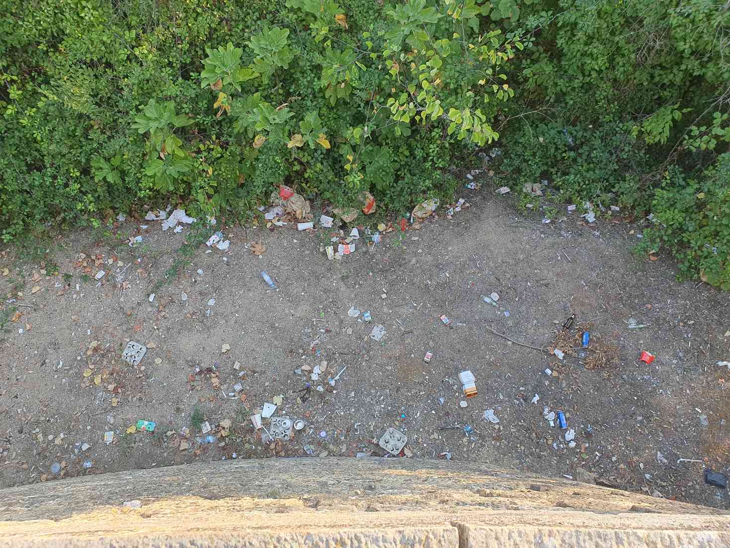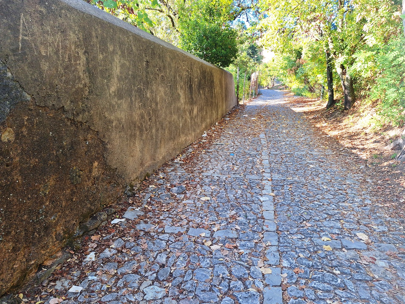 O mesmo problema acontece junto ao muro da Mata dos Sete Montes na estrada de acesso ao Convento de Cristo pelo lado poente, por onde saem todos os autocarros com turistas após visitarem o monumento.