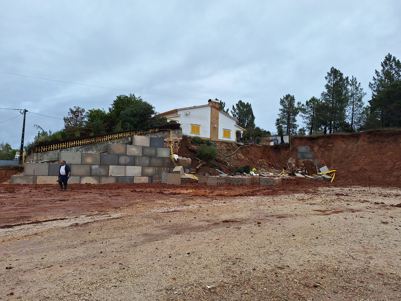 Para consolidar a barreira da vivenda que faz fronteira com o terreno do futuro lar da Venda Nova, os dirigentes da Associação local mandaram construir um muro com blocos de grandes dimensões, empreitada que já estava na fase final.
