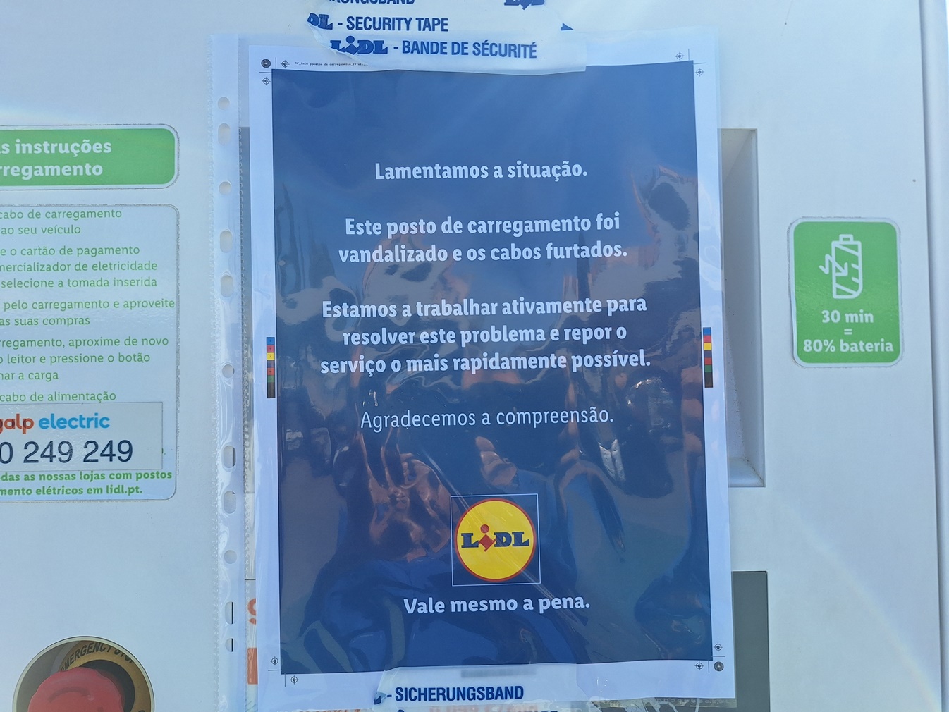 No posto do Lidl, onde o carregador foi vandalizado, foi afixado um comunicado: